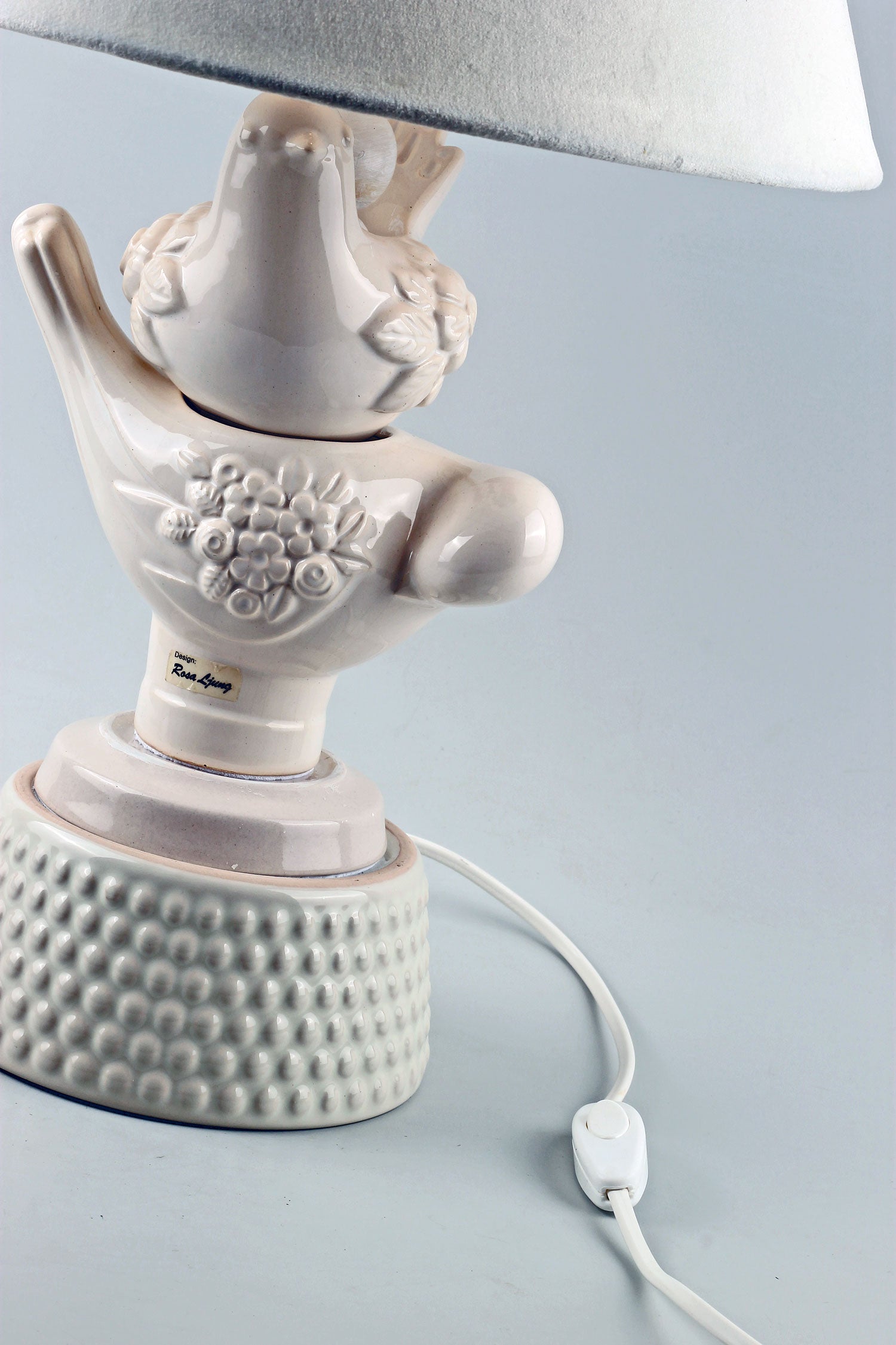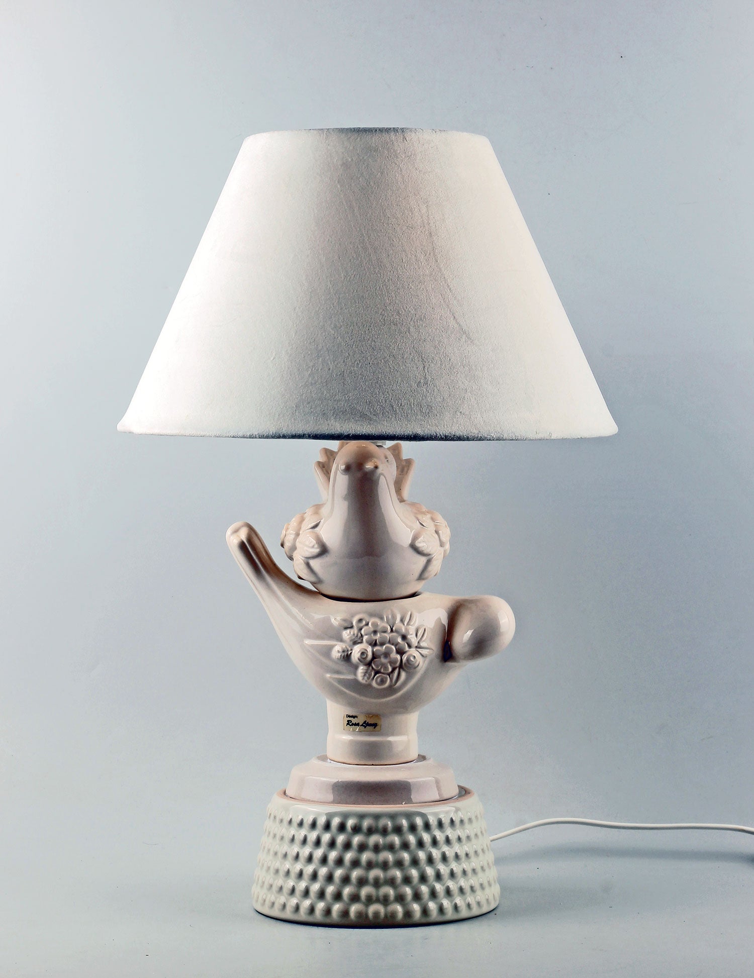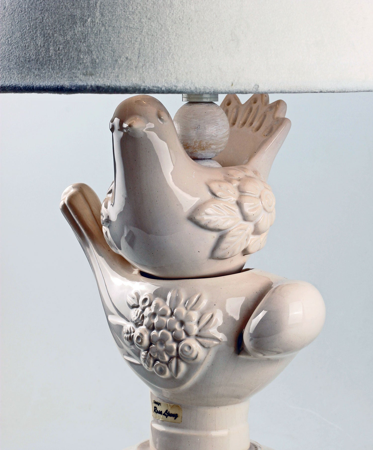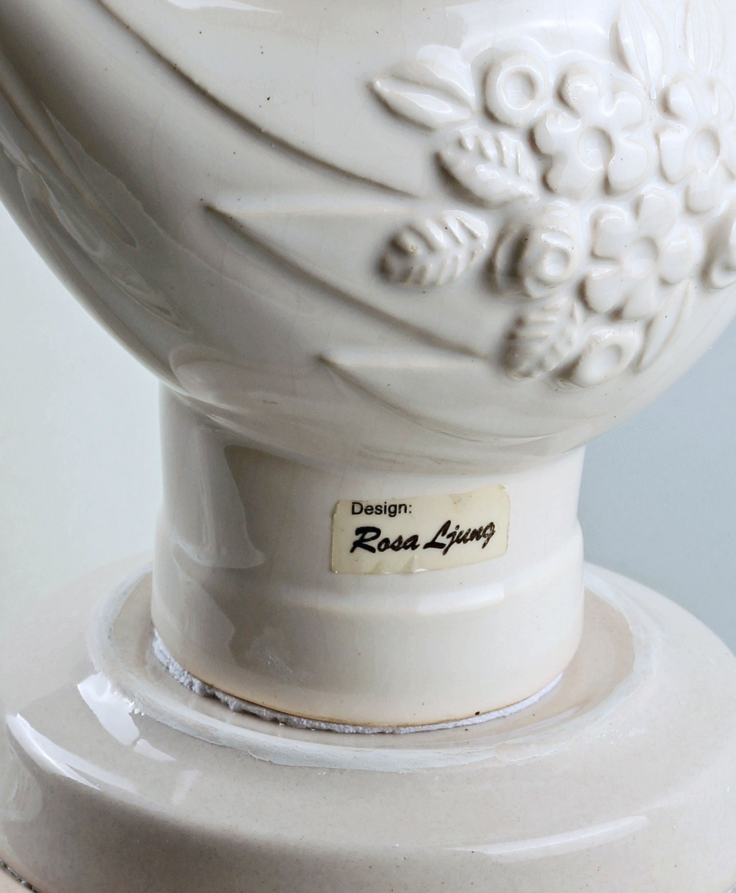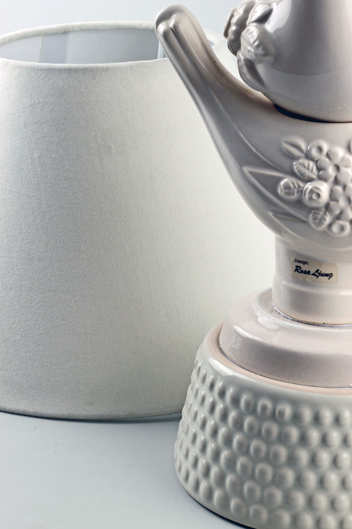 Nytillverkad cremevit sammetslampskärm medföljer. Skärmhöjd: 20 cm. Skärmdiametrar: 15/30 cm.