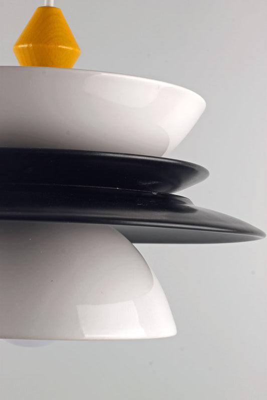 Höjd: 10 cm. Skärmdiametrar: 21/27/16,5 cm. Svart textilsladd med E27-lamphållare, dragavlastning, kåpa samt upphäng. Sladdlängd: 1,8 m.