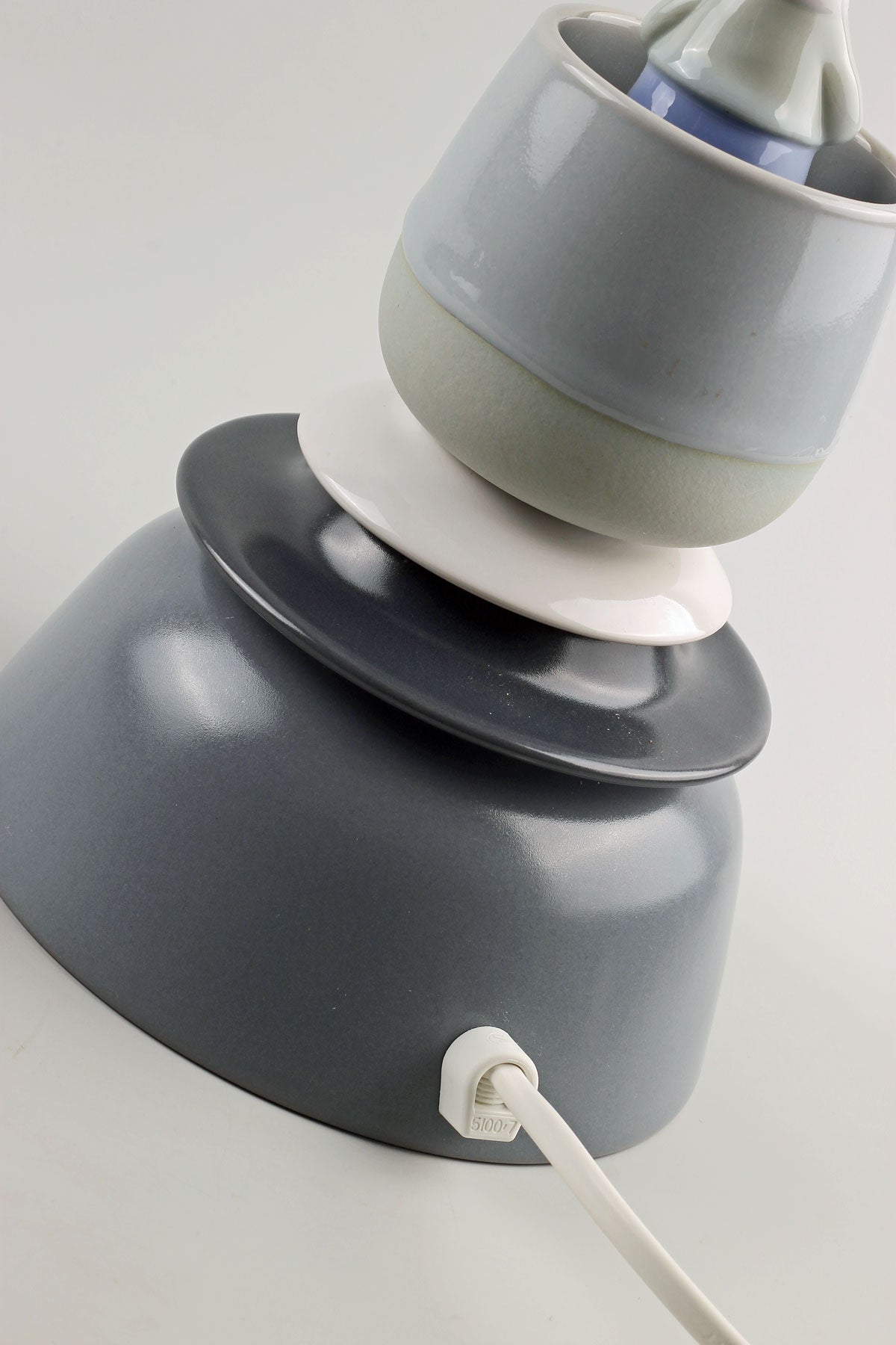 Bordslampans totalhöjd inklusive lampskärm: 47,5 cm. Höjd utan lampskärm: 36 cm. Fotens diameter: 14,5 cm. Vit sladd med strömbrytare. Vit gängad E27lamphållare med tillhörande skärmringar.