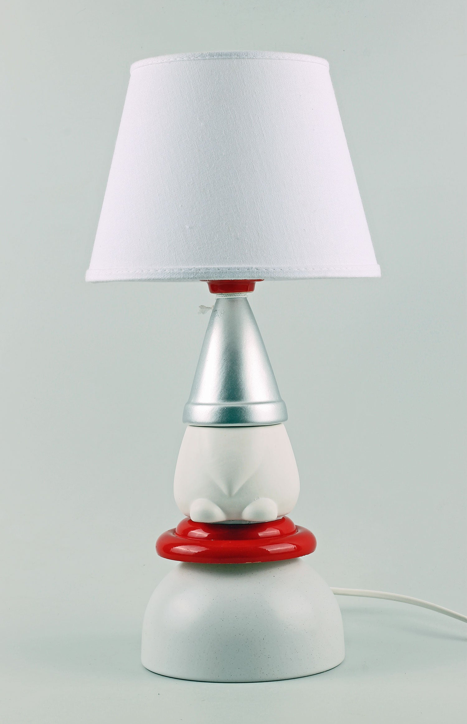Lampans totalhöjd inklusive medföljande lampskärm: ca 42 cm. Höjd utan lampskärm: 33,5 cm. Fotens diameter: 14 cm. Vit sladd med strömbrytare. Vit gängad E27-lamphållare.