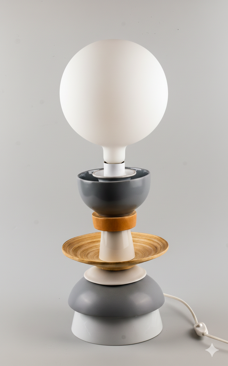 Lampskulpturens totalhöjd inklusive medföljande ljuskälla: 55 cm. Höjd utan ljuskälla: 33 cm. Fotens diameter: 18 cm. Vit sladd med strömbrytare. Slät vit E27-lamphållare.